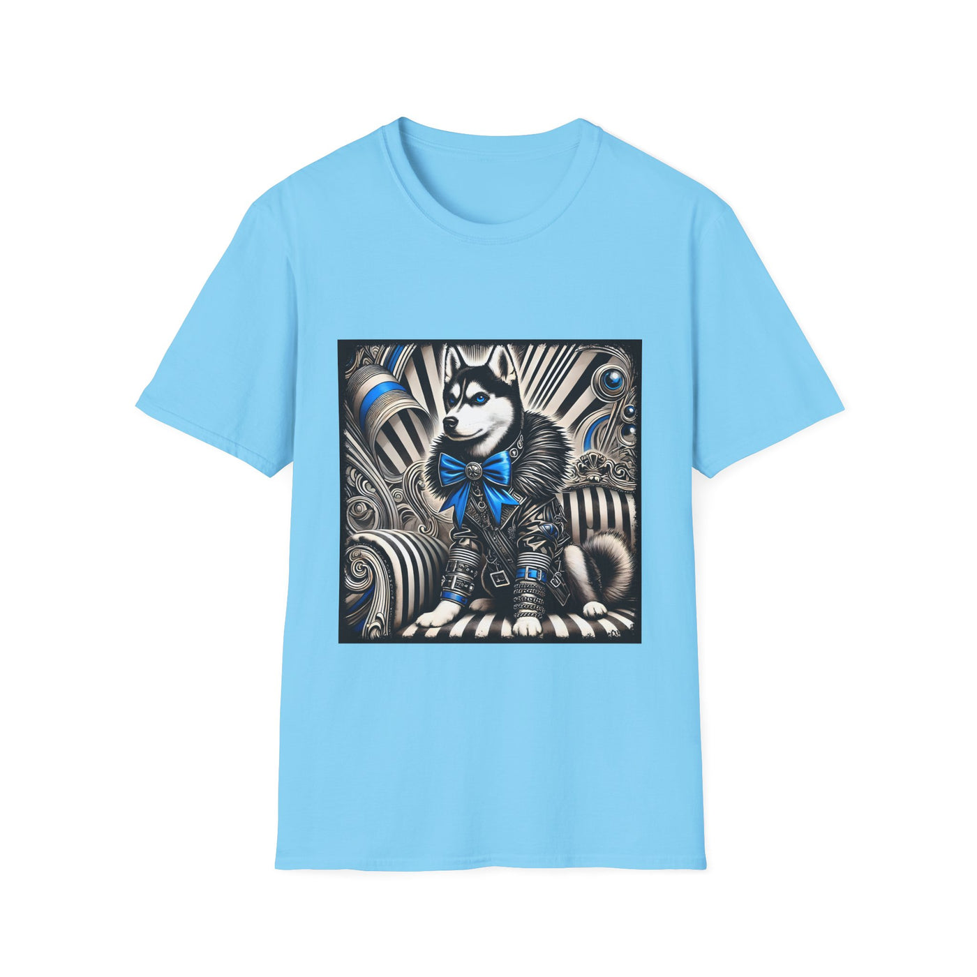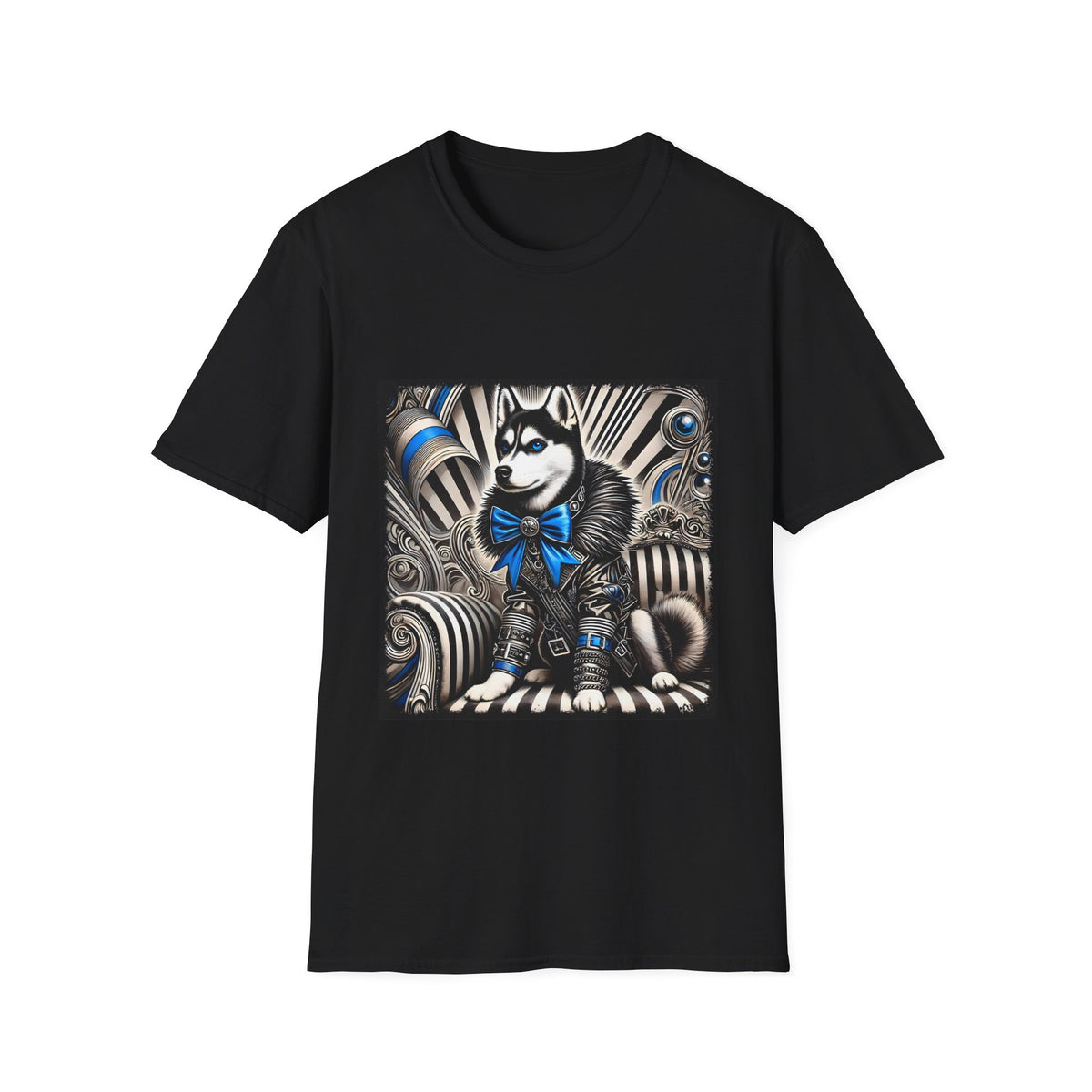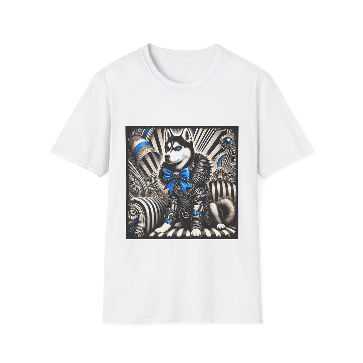 Siberian Husky B&W Blue Bow | Unisex Dog T-Shirt