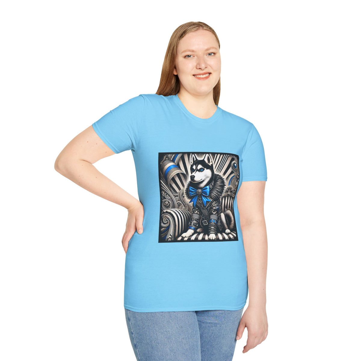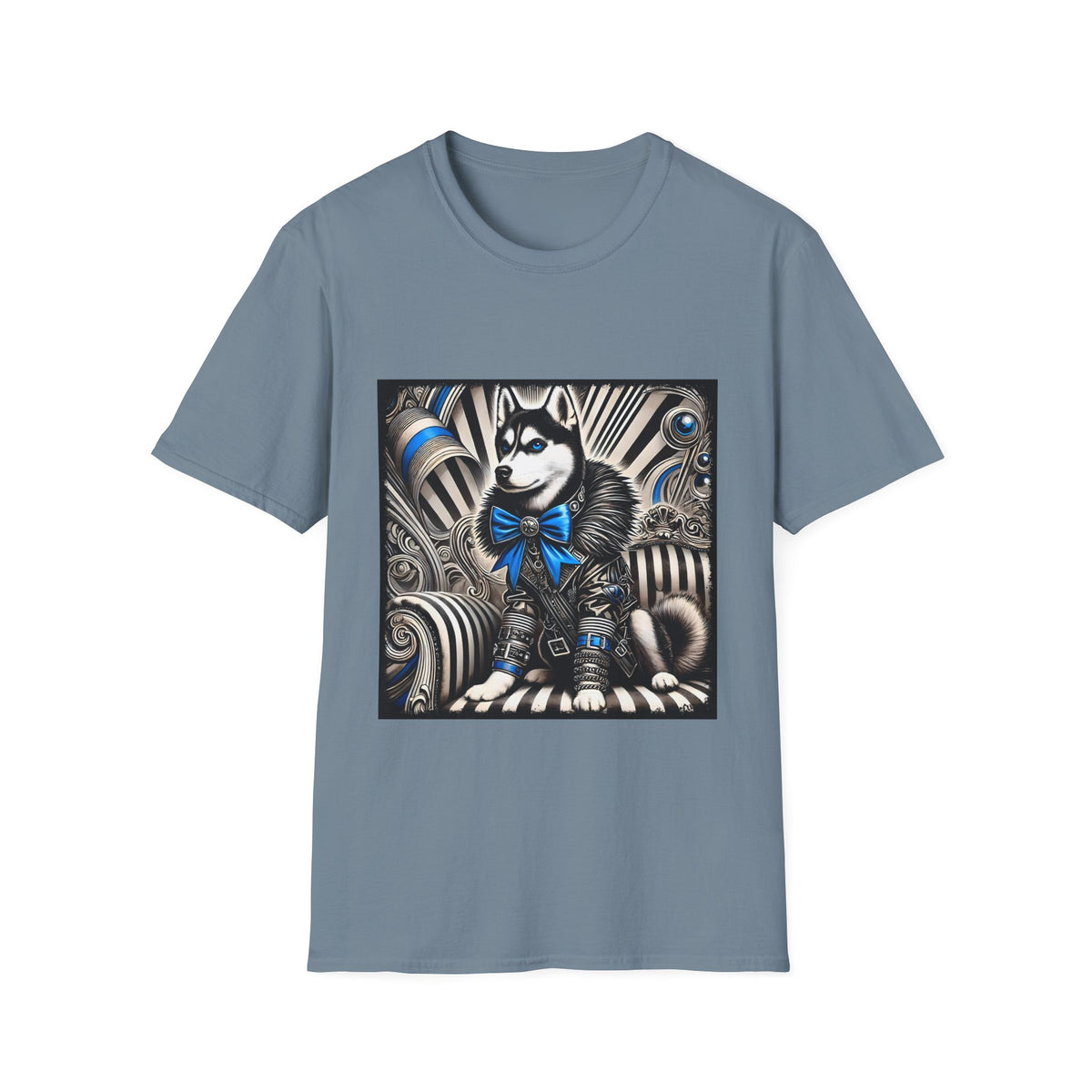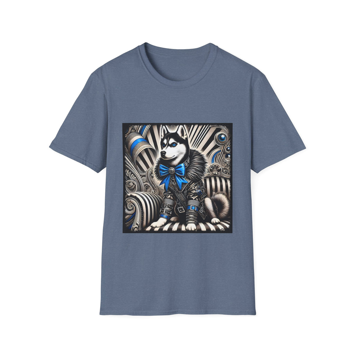 Siberian Husky B&W Blue Bow | Unisex Dog T-Shirt
