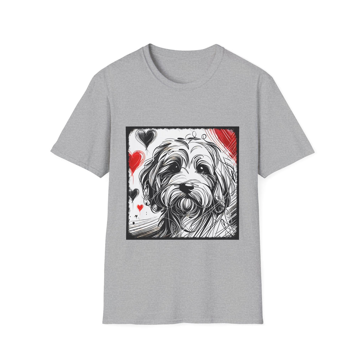 Cavapoo Bold Heart Sketch | Unisex Dog T-Shirt - Sport Grey / XS